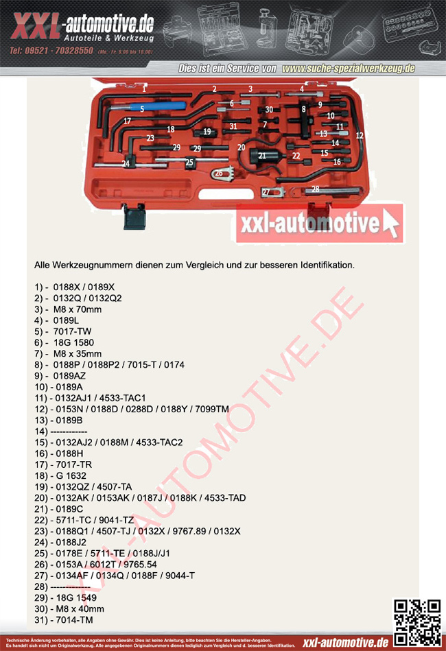 diverse Arretierwerkzeuge für Pumpen, Spannrollen und Kurbelwellen, Zahnriemenhalteklammer, Schwungrad, Blockierwerkzeuge, Riemenspannschlüssel, Passschrauben, Abzieher für Kurbelwellen, Riemenscheibe, Spannschlüssel