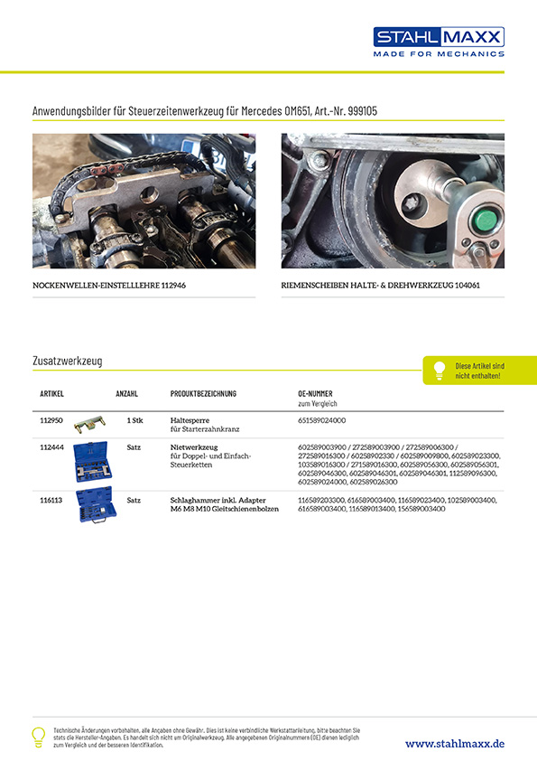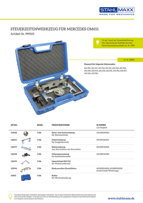 Vergleichsnummern zu "Steuerzeiten für Mercedes Motor OM651 - Leihwerkzeug"