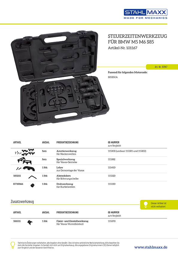 Vergleichsnummern zu "Steuerzeiten Werkzeug für BMW M5 M6 S85 Motor - Leihwerkzeug"