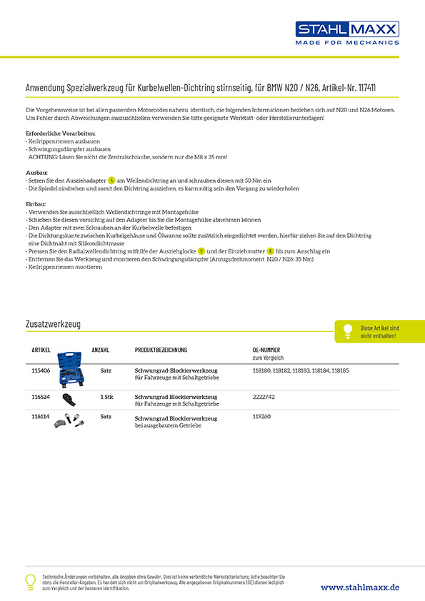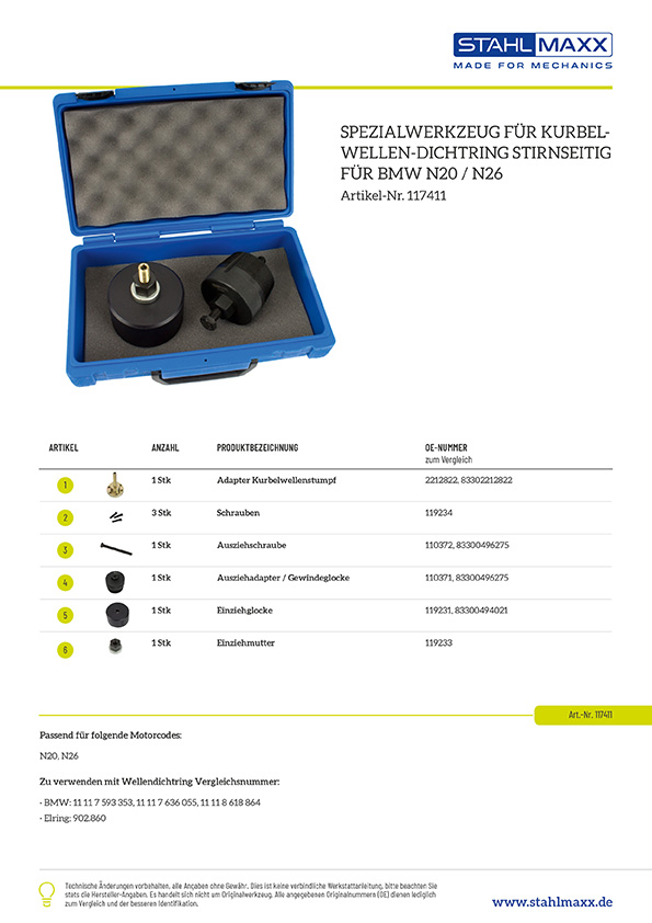 Weiterführende Links zu "Kurbelwellen Dichtring stirnseitig für BMW N20 N26 wie 110370 2212822 119230 - Leihwerkzeug"