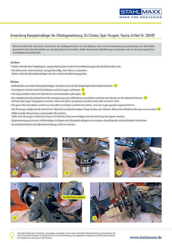 Weiterführende Links zu "Kompaktradlager De-und Montagewerkzeug Citroen, Opel, Peugeot, Toyota, wie J-0562 - Leihwerkzeug"
