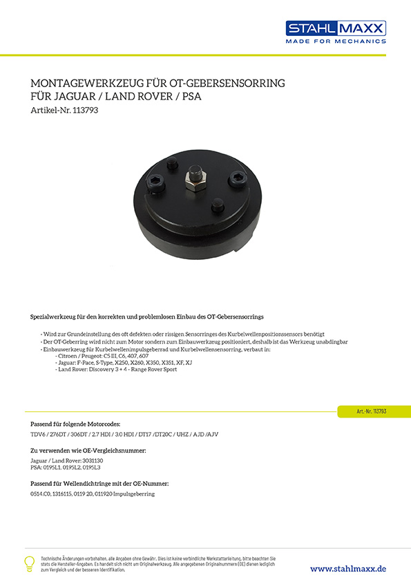 Vergleichsnummern zu "Montagewerkzeug für OT-Gebersensorring, für PSA, Jaguar, Land Rover - Leihwerkzeug"