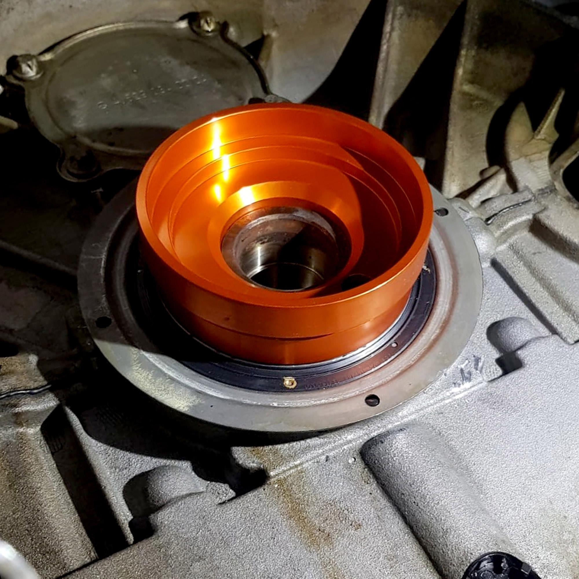 Zur sicheren und beschädigungsfreien Montage des Wellendichtrings an der Kurbelwelle (getriebeseitig).