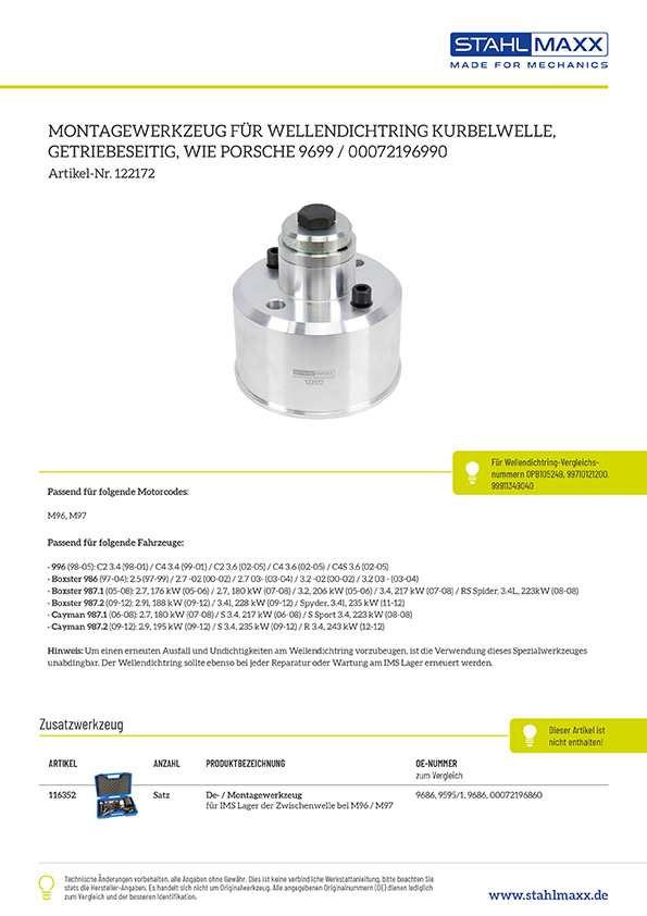 Art.-Nr. 116352 Spezialwerkzeug für Porsche IMS Lager