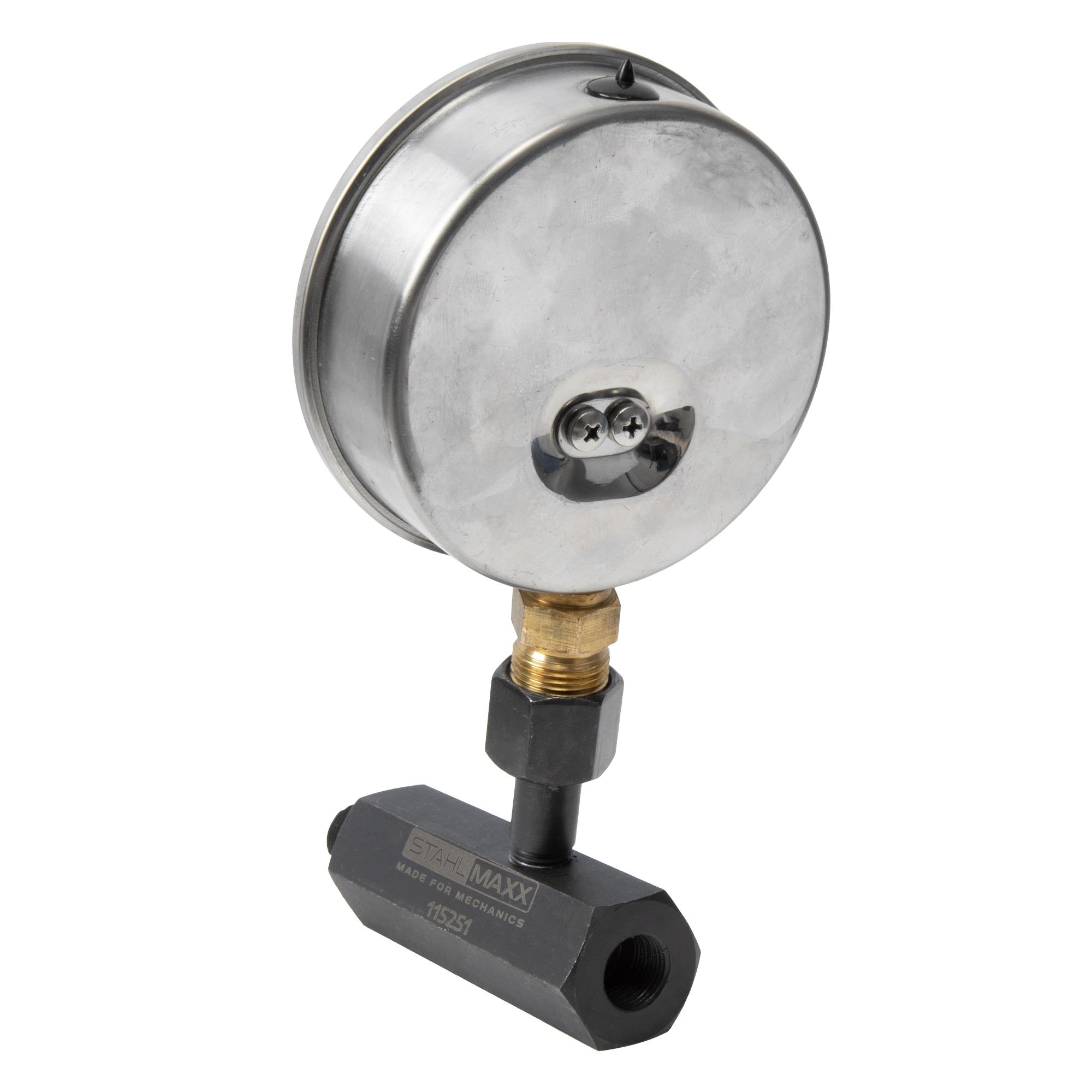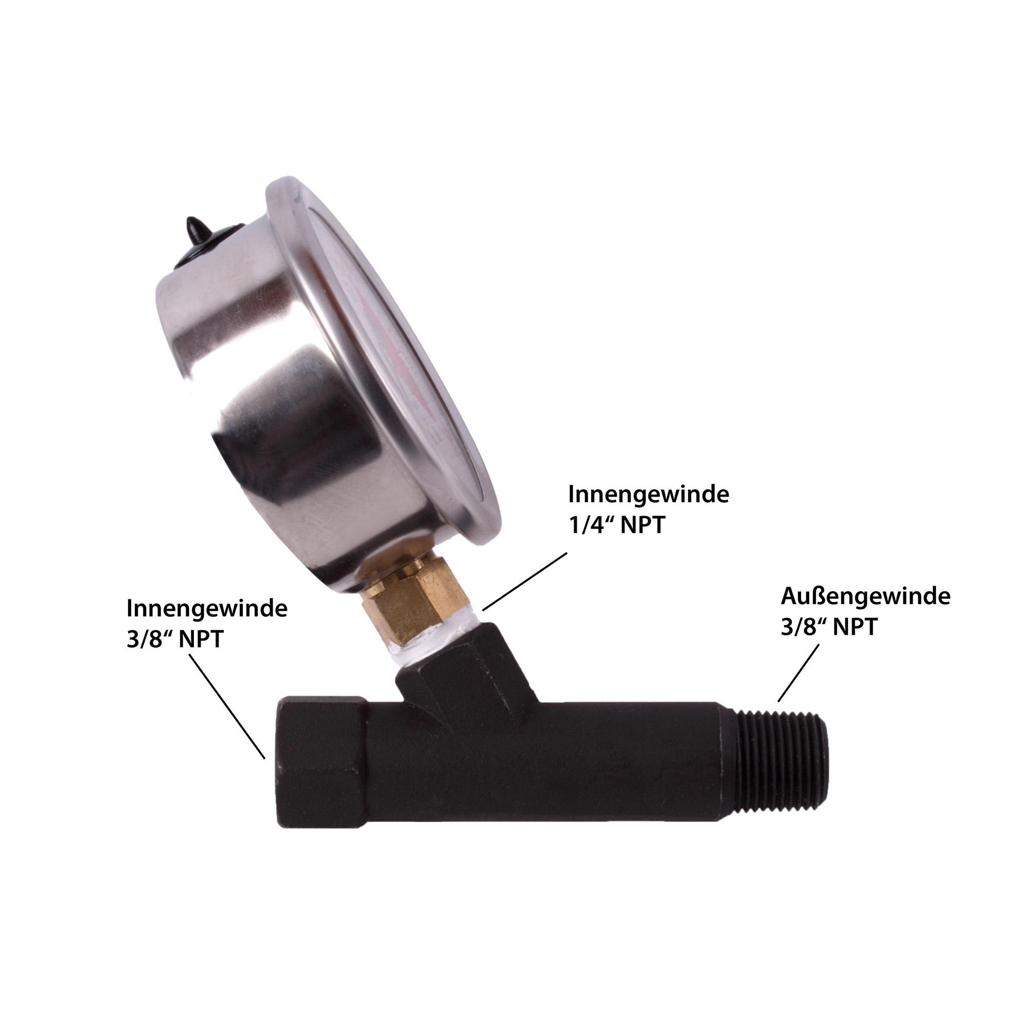 Hydraulik-Glycerin-Manometer zum Nachrüsten an Hydraulik-Pumpen, wie z.B. Art.-Nr. 106831 und 123504.