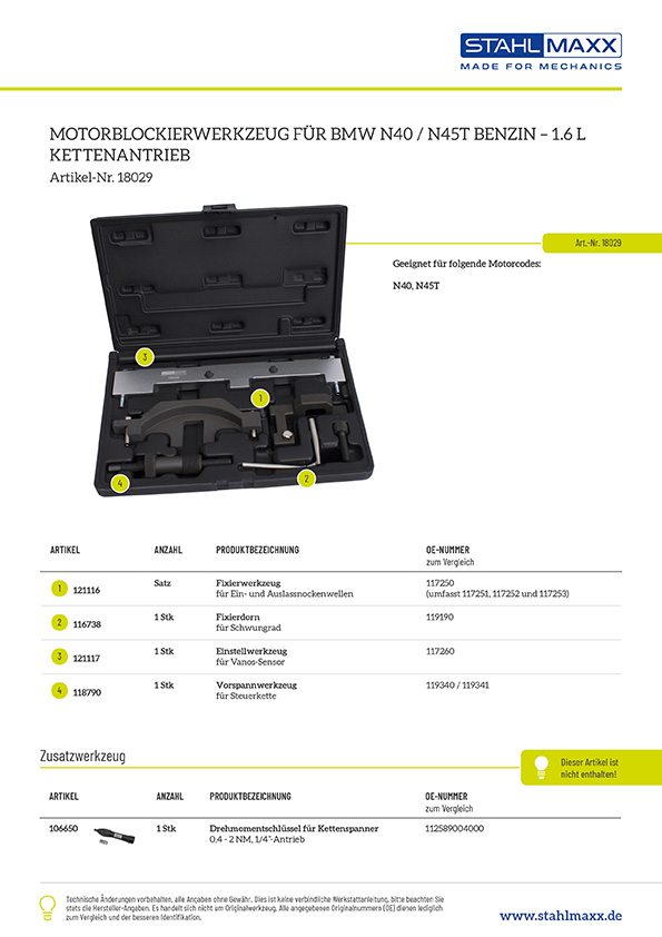 Art.-Nr. 121116 Nockenwellenfixierung N40, N45, wie BMW 117250 / 8330 0494307
