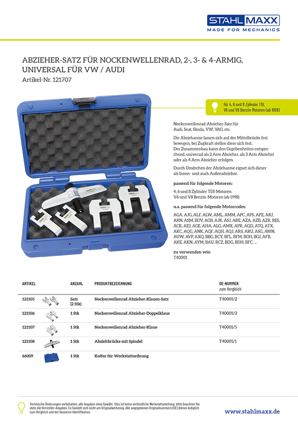 Art.-Nr. 121707 Abzieher-Satz, wie T40001 VW Spezialwerkzeug