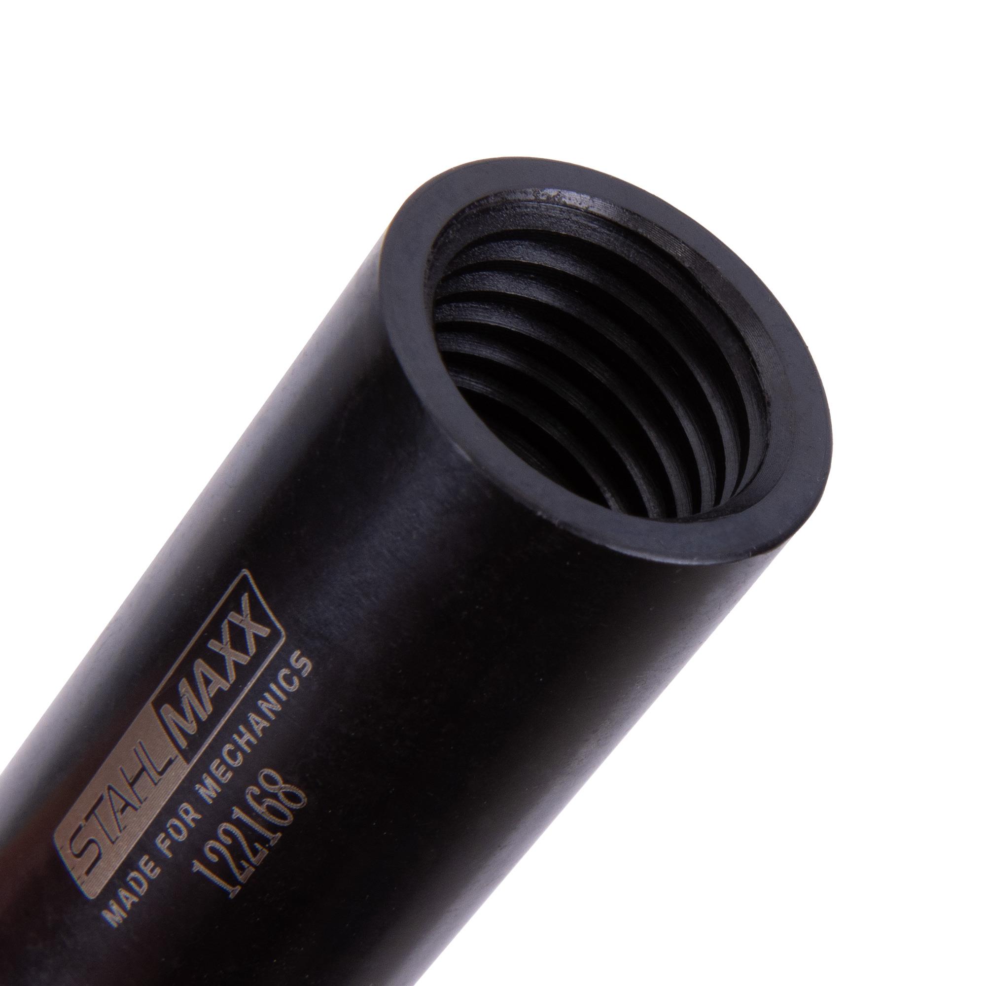 Antriebswellen, Radnaben, Radlager sowie auch Trag- und Führungsgelenke erfordern, bei Verwendung des Hydraulikzylinders, oft ein direktes Aufsetzen der Gewindespindel. Um die Zug- und Druckspindel vor Beschädigungen zu schützen kann dieser Adapter auf das vordere Ende der Spindel aufgeschraubt werden.