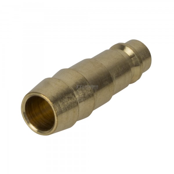 Stecker aus Messing mit Schlauchtülle zum Aufschieben des Schlauches und Sichern mit Schlauchklemme. mehr