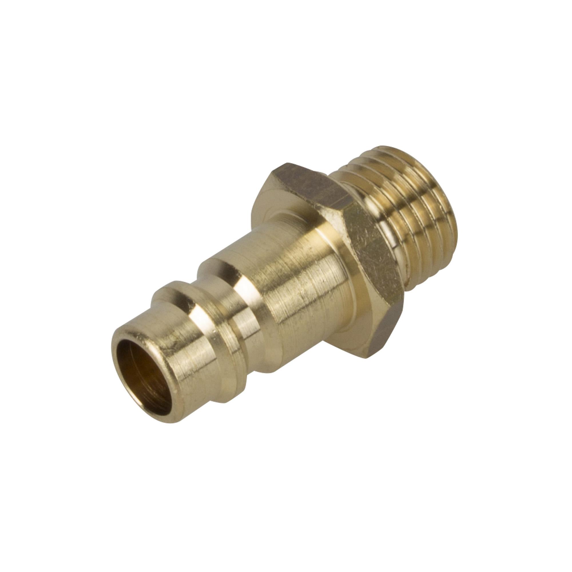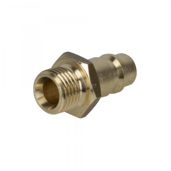 - Stecker aus Messing mit 1/4" Aussengewinde und Kupplungsanschluss.