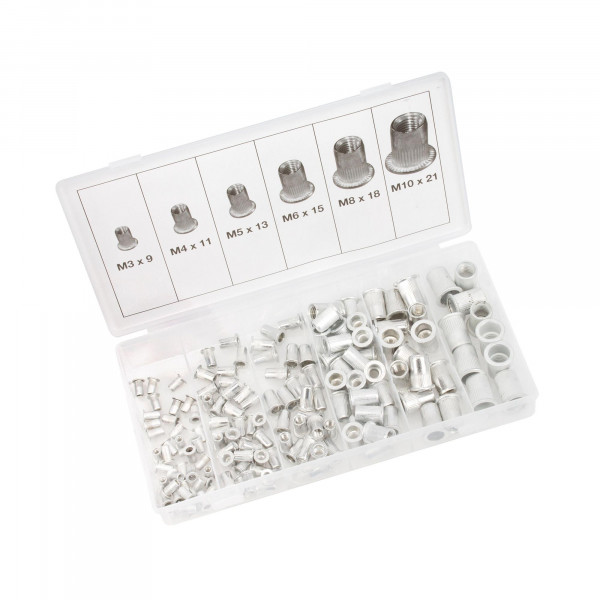 Nietmuttern-Sortiment, Aluminium, 150-tlg.