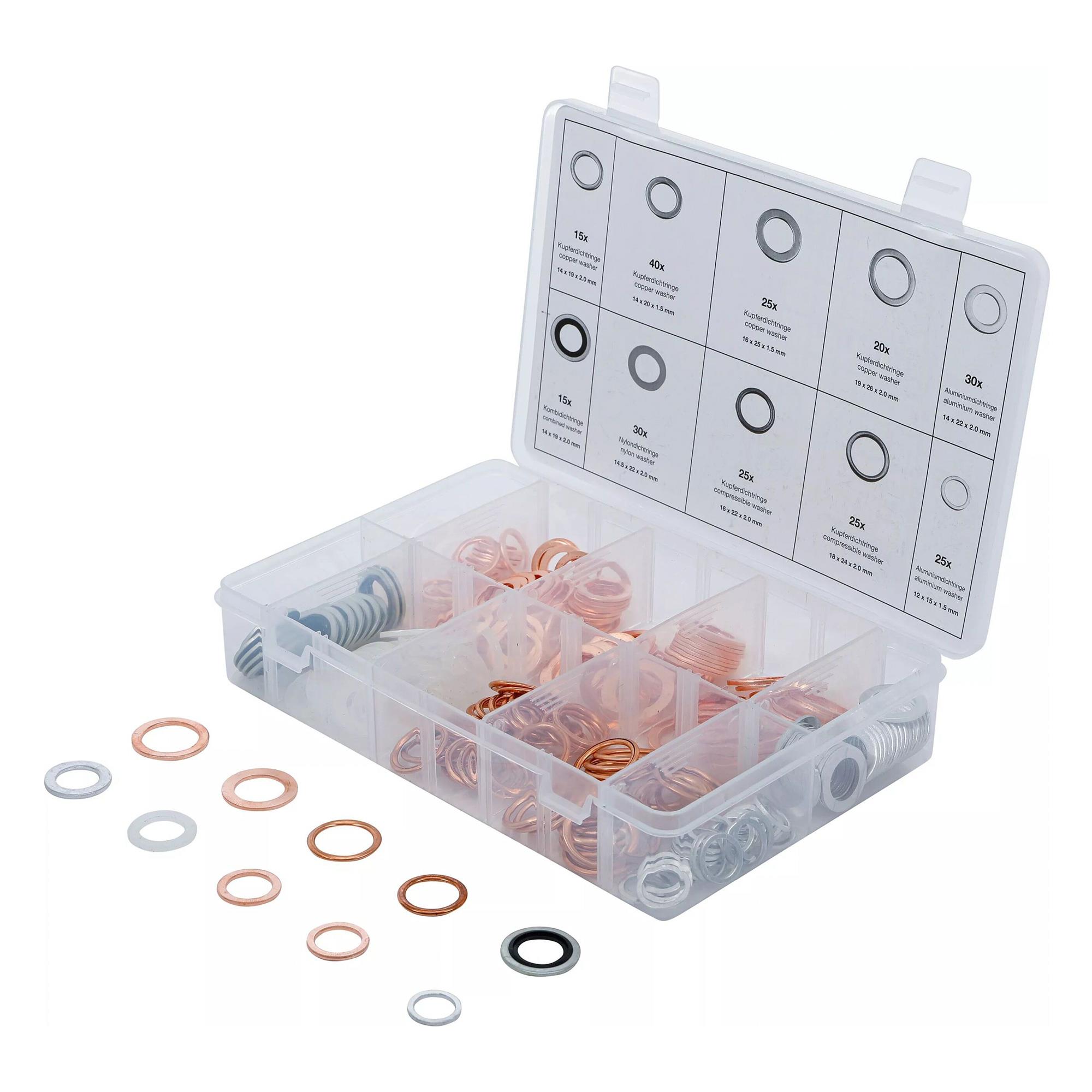 "Dichtring-Sortiment, Kupfer, Aluminium, Nylon, 250-tlg"