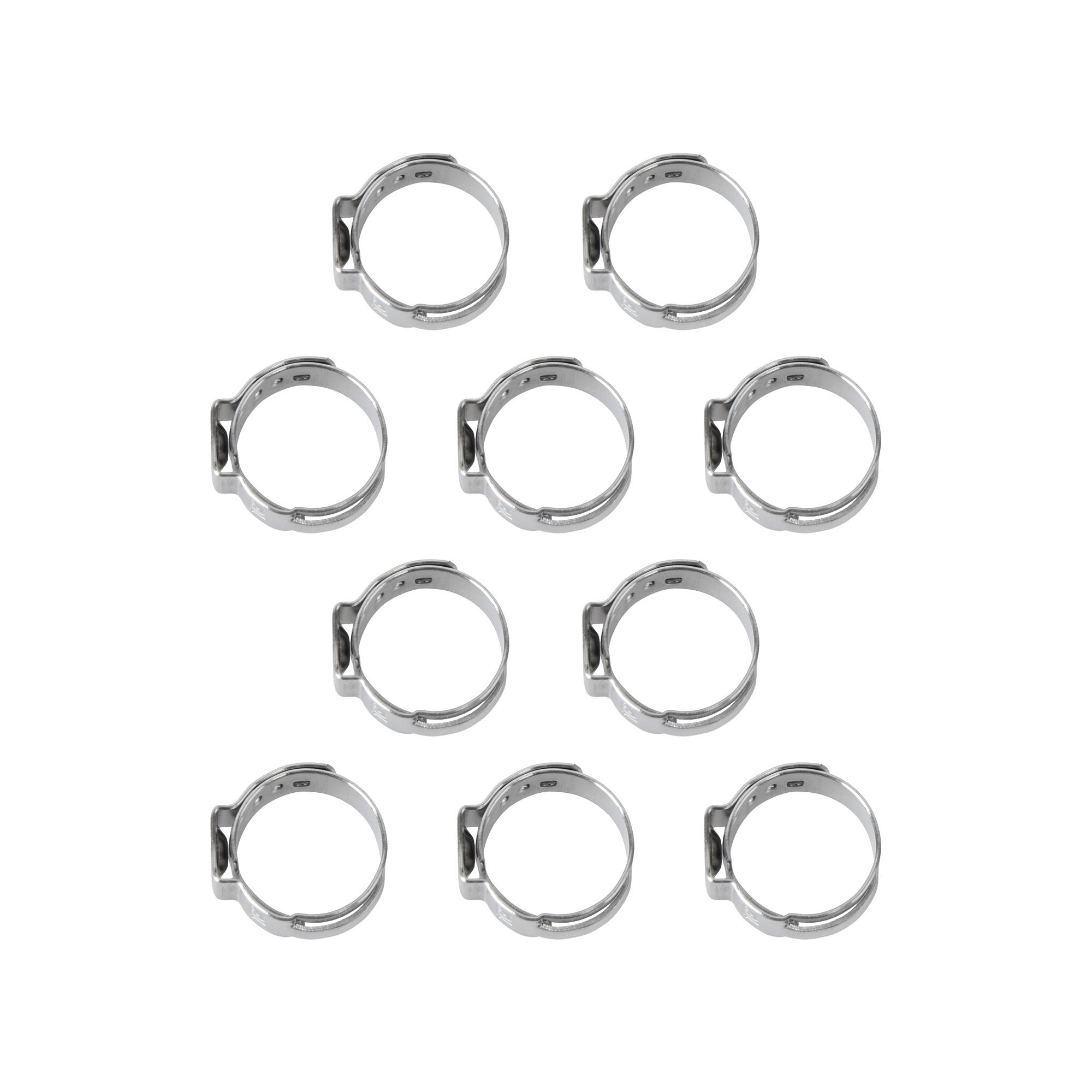 "1-Ohr Schlauchschellen, Spannweite 13.7-16.2 mm, Bandbreite 7 mm, Edelstahl W4, mit Einlage, 10 Stk"