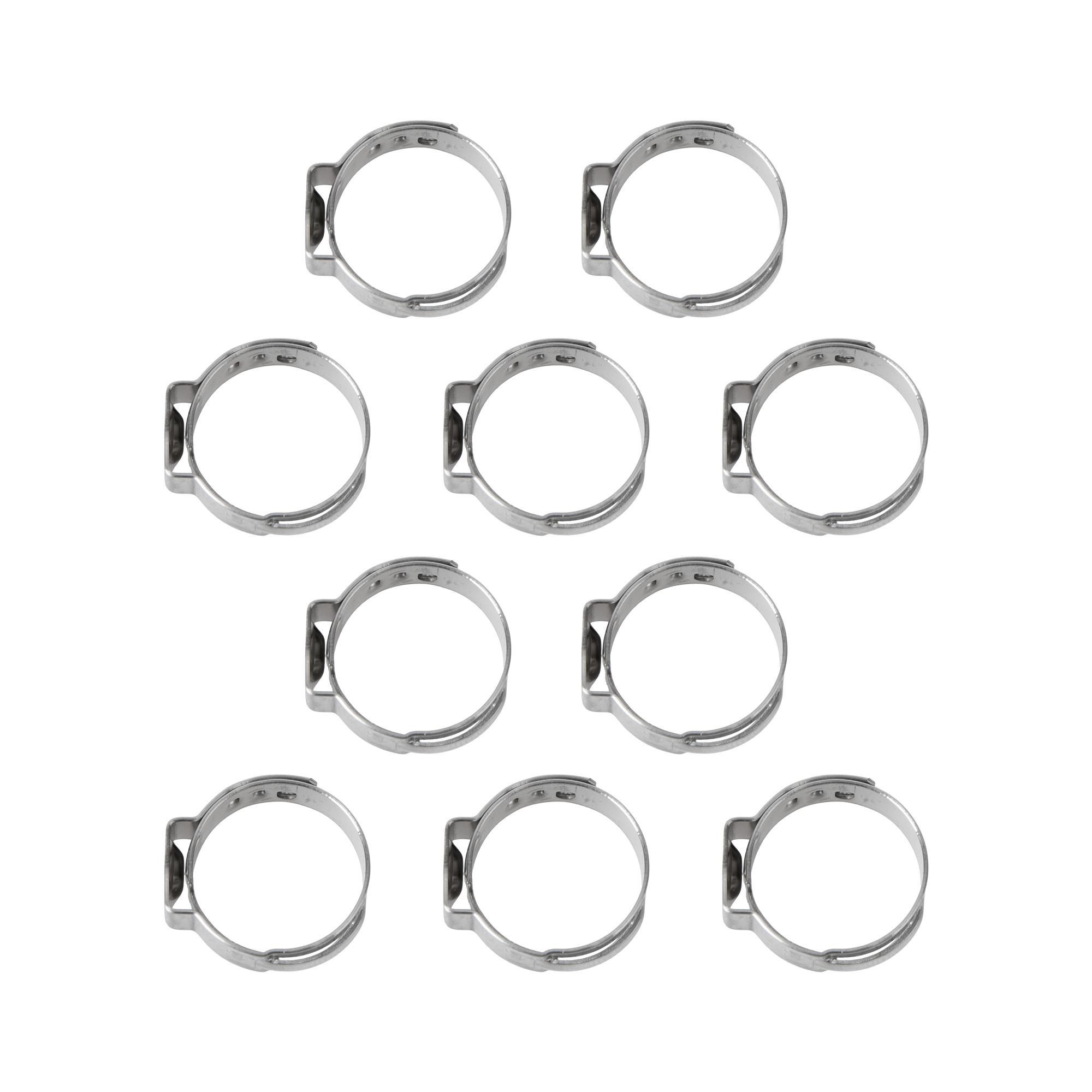 Art.-Nr. 124411 1-Ohr Schlauchschellen, Spannweite 14.6-17.8 mm, Bandbreite 7 mm, Edelstahl W4, mit Einlage, 10 Stk