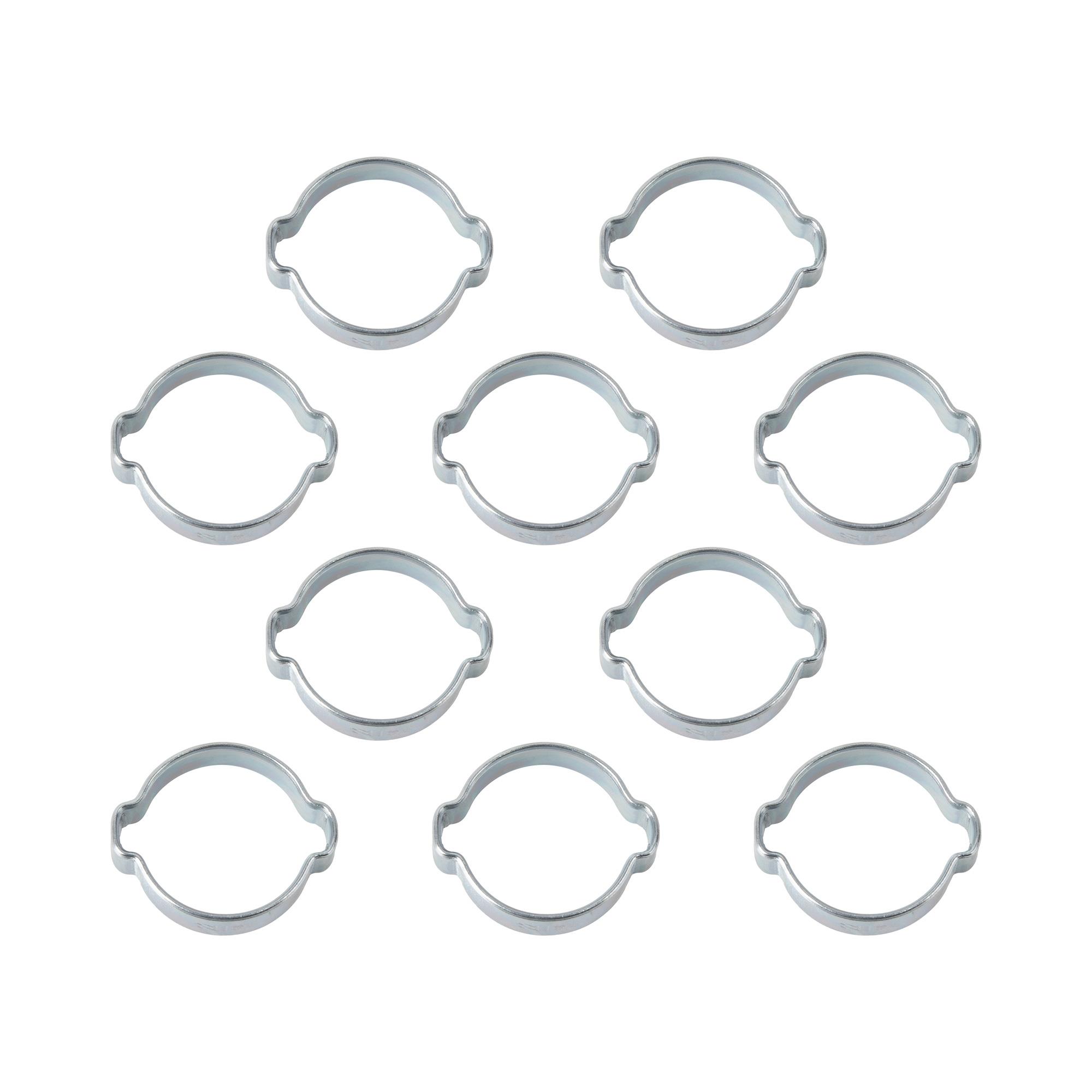 Art.-Nr. 124423 2-Ohr Schlauchschellen, Spannweite 15-18 mm, Bandbreite 7,5 mm, verzinkter Stahl, 10 Stk