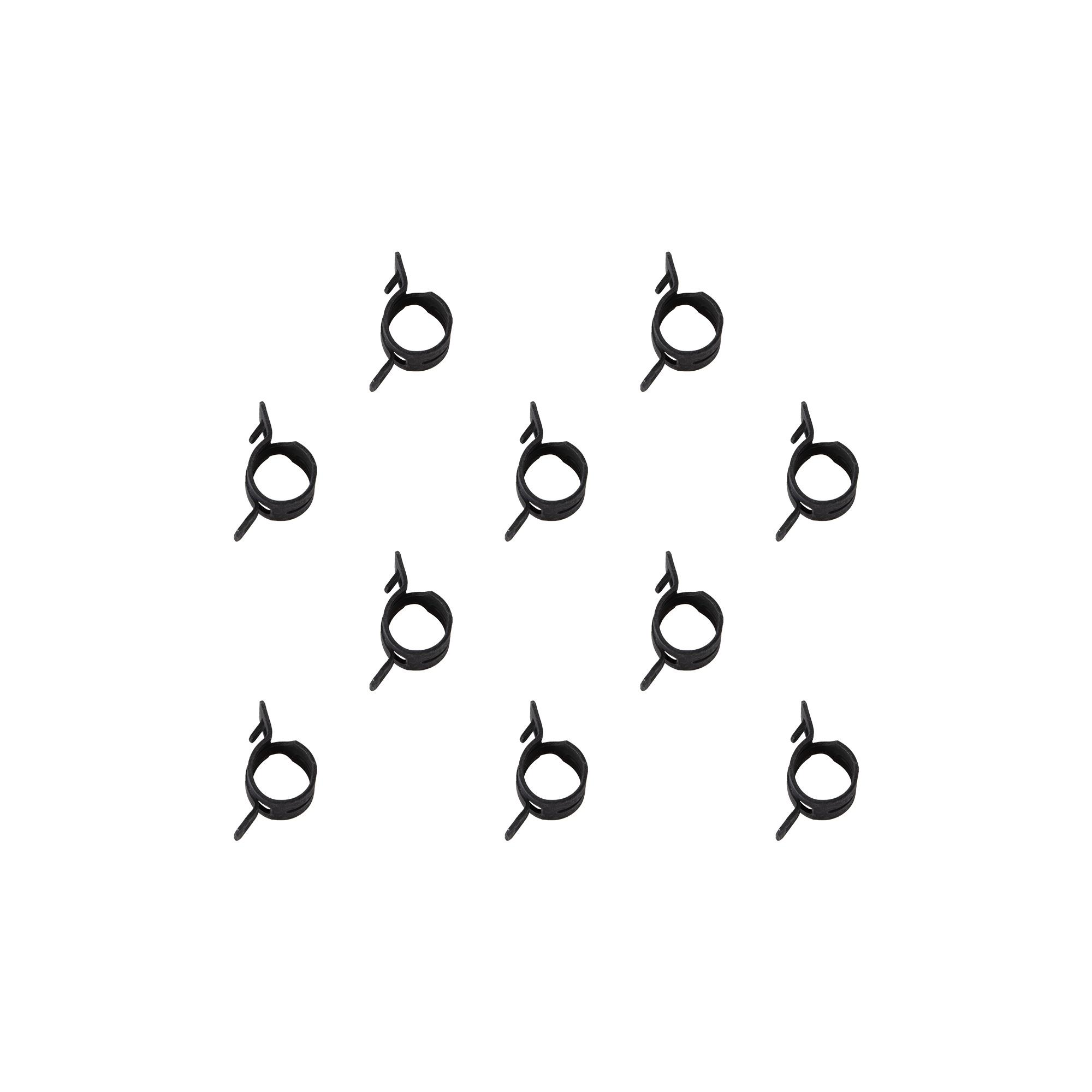 Hochwertige, selbst spannende Federbandschelle (FBS) im 10er-Pack, aus Federstahl, mit 12 mm Bandbreite.