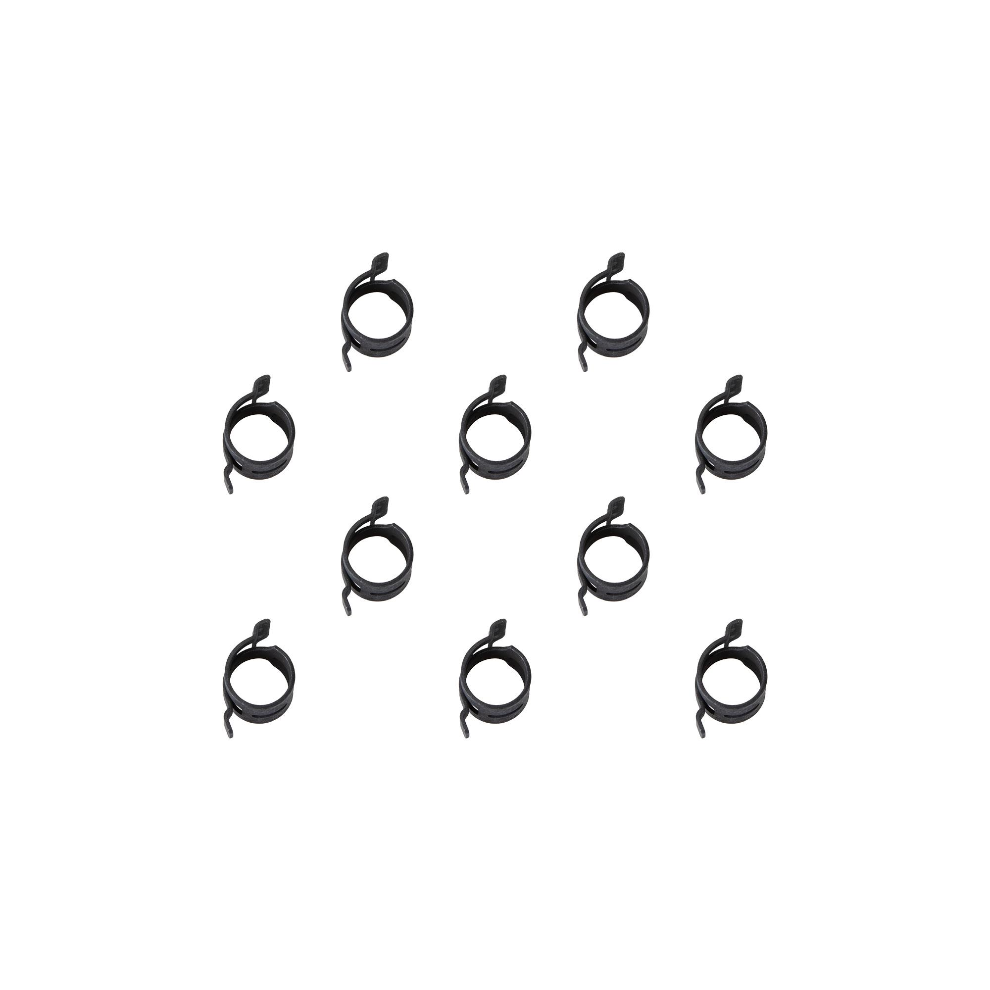 Hochwertige, selbst spannende Raumspar-Federbandschelle (FBS) im 10er-Pack, aus Federstahl, mit 12 mm Bandbreite.