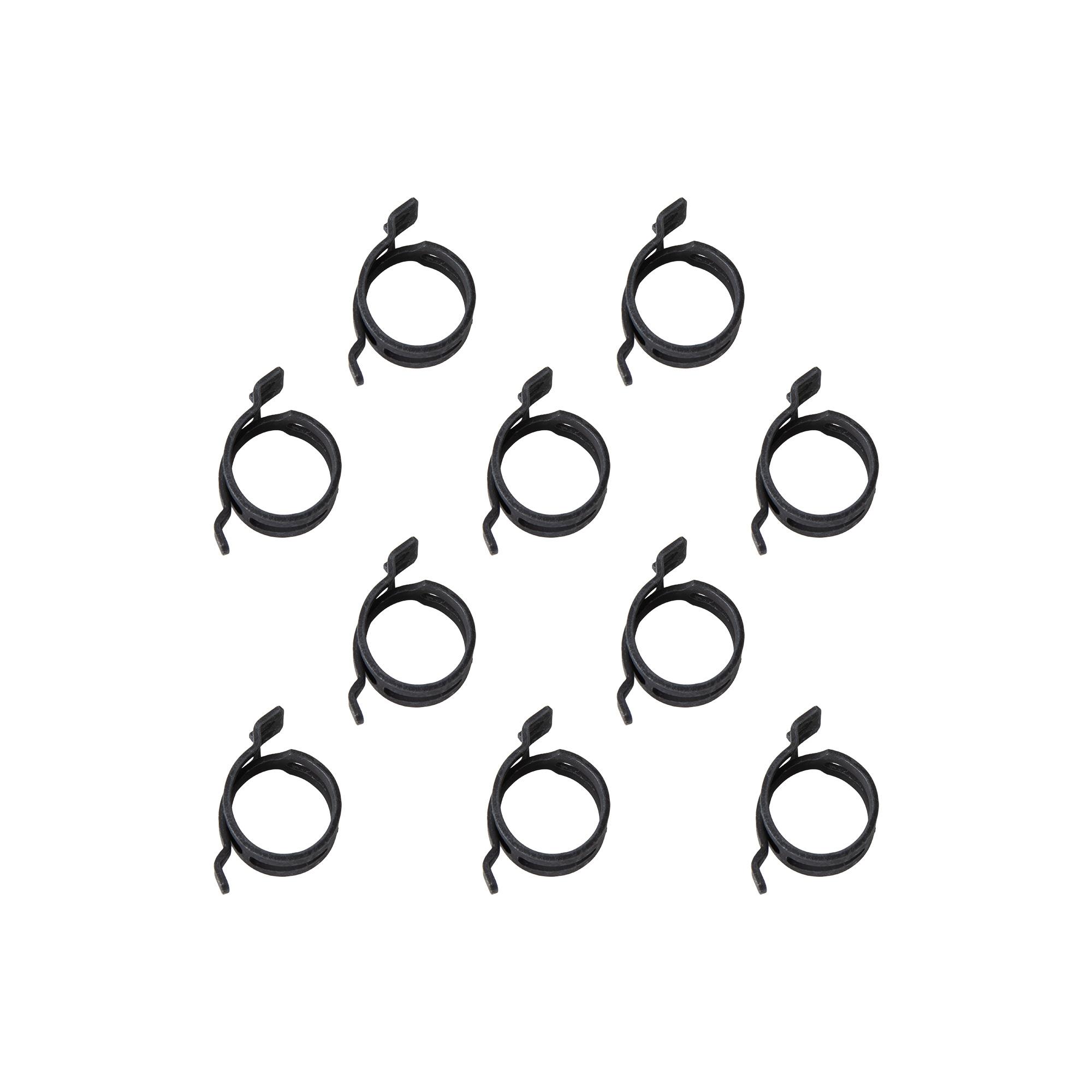 Hochwertige, selbst spannende Raumspar-Federbandschelle (FBS) im 10er-Pack, aus Federstahl, mit 12 mm Bandbreite.