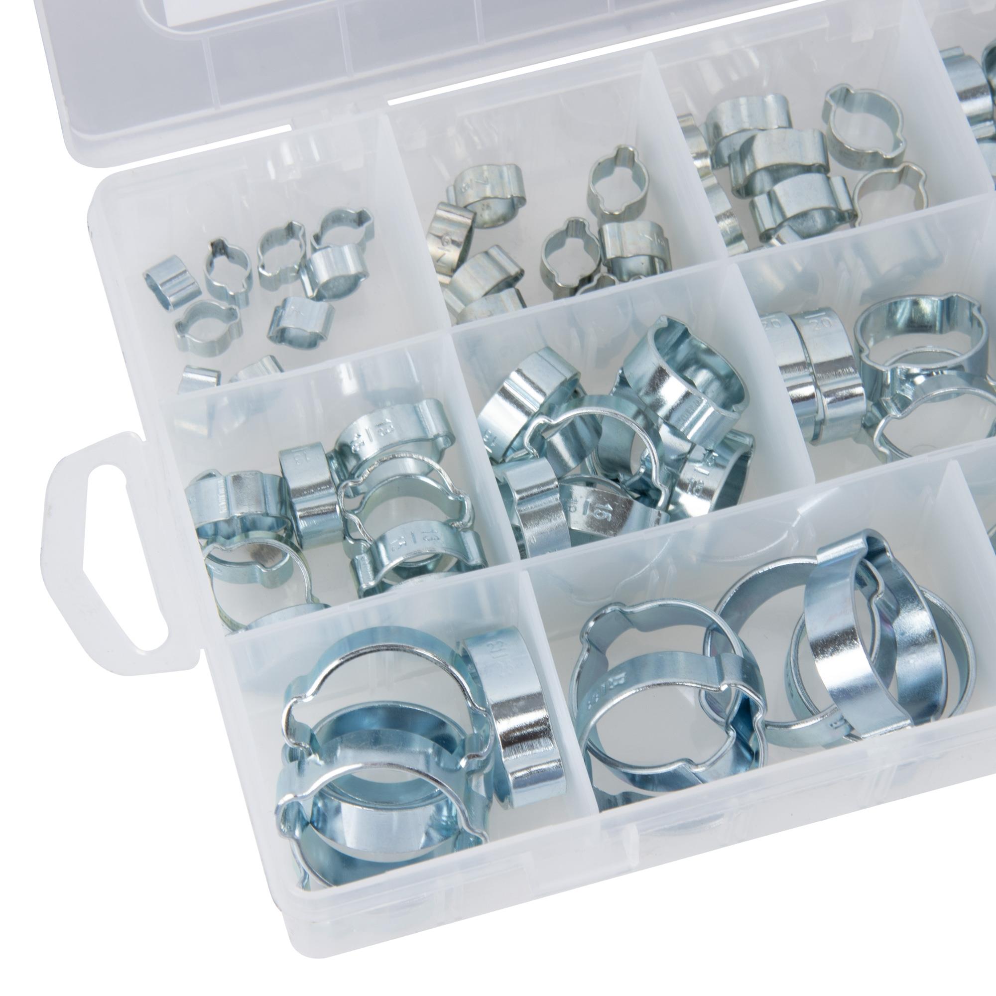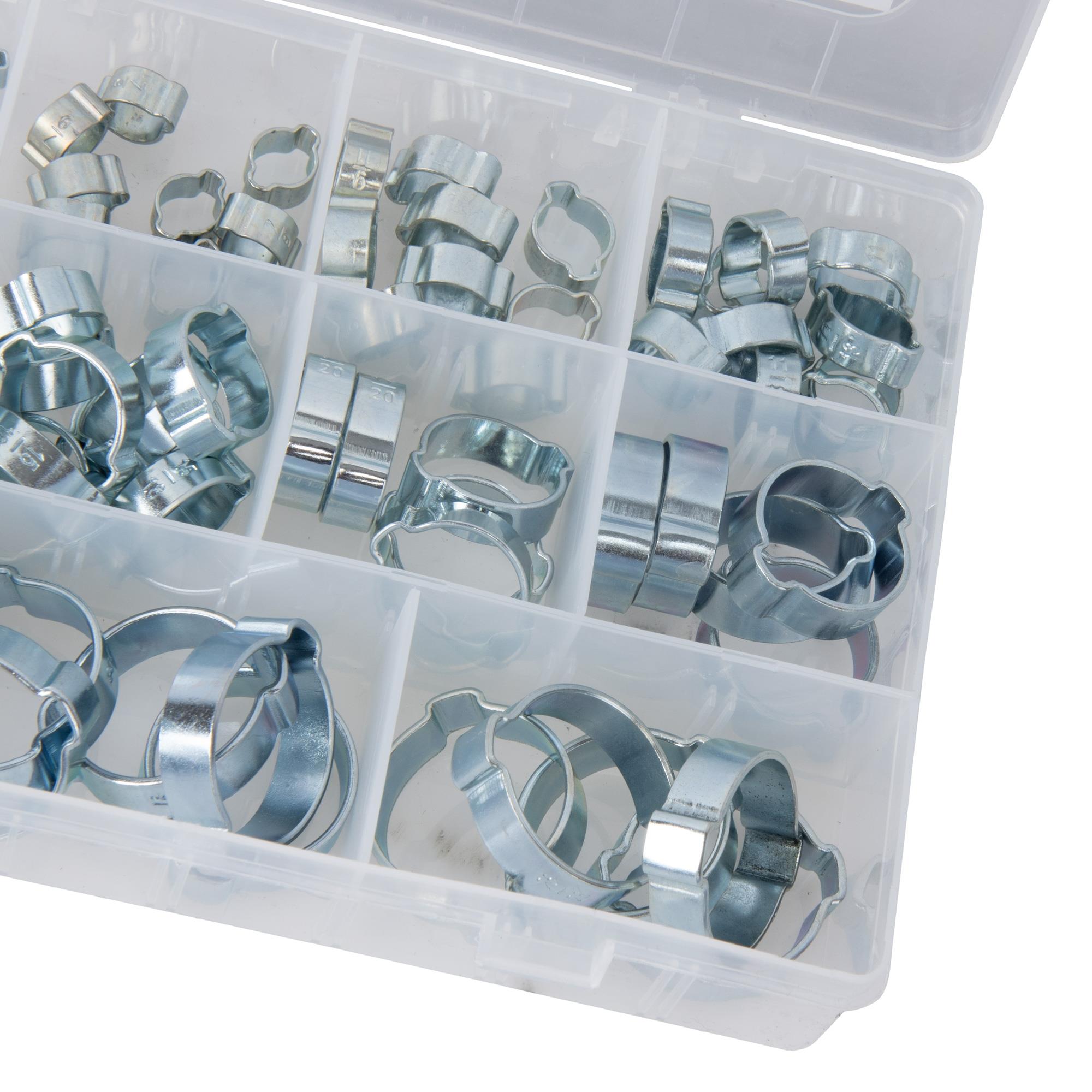 "2-Ohr Schlauchschellen-Satz, Schlauchklemmen-Satz, Spannweite 5-28 mm, verzinkter Stahl, 85 Stk"